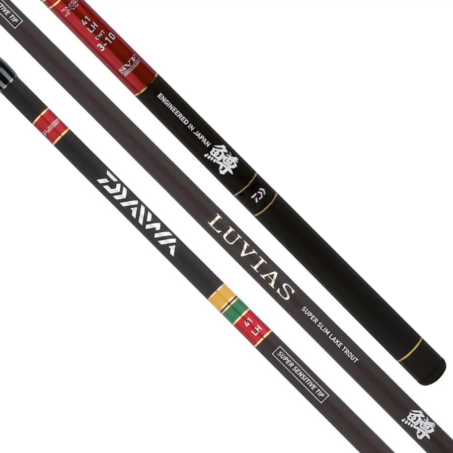 Eredi delle TD Specialist SS Lake Trout, le Luvias Super Slim sono dotate di blank a diametro ridotto costruiti in carbonio SVF ad alta densità di stratificazione, abbinato alla resina Nanoplus che permette una risposta meccanica più omogenea e uniforme alle sollecitazioni.